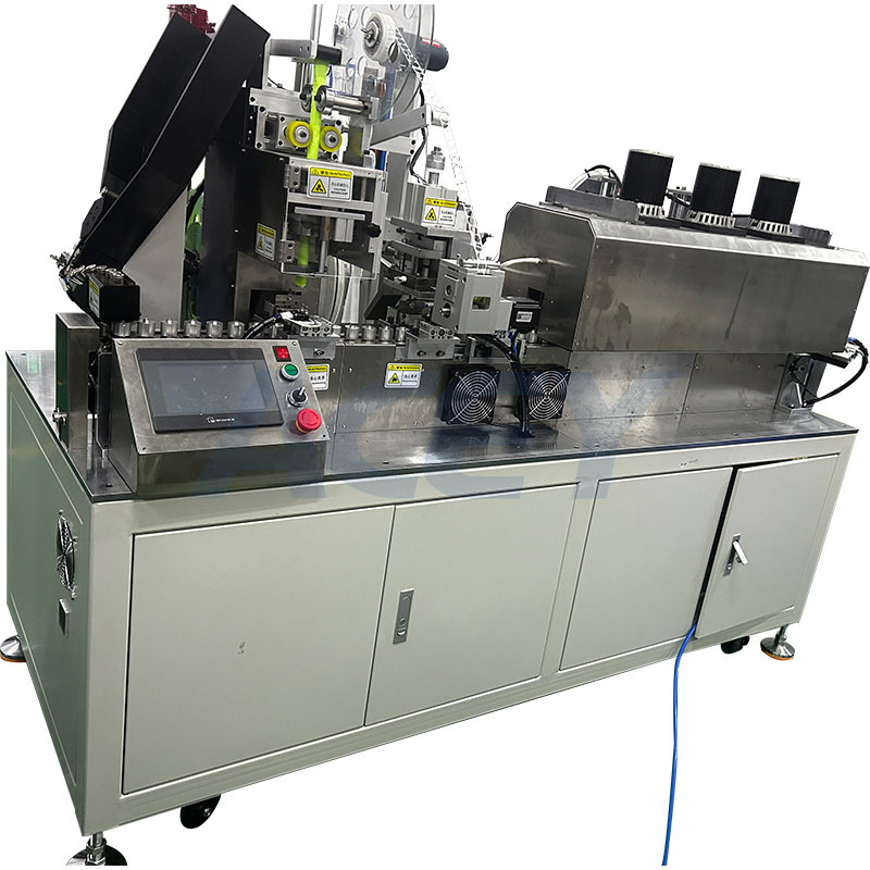Aplicador automático de mangas retráctiles ACEY-ASM-1 Está diseñado para aplicar y contraer automáticamente tubos termorretráctiles a celdas cilíndricas de batería. Coloca la funda con precisión, la calienta uniformemente para una adhesión firme y garantiza que cada celda esté completamente aislada y protegida. Este proceso mejora la apariencia de la celda, previene cortocircuitos y mejora la seguridad y durabilidad del ensamblaje de la batería.